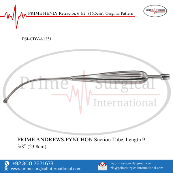 PRIME ANDREWS-PYNCHON Suction Tube, 9 3/8” (23.8cm). Material: German Stainless Steel • Stainless Steel Instrument • ISO 9001:2015 & CE MDR Certified