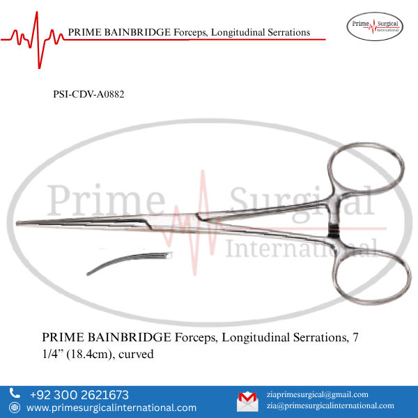 PRIME BAINBRIDGE Forceps, Longitudinal Serrations. Material: German Stainless Steel • Stainless Steel Instrument • ISO 9001:2015 & CE MDR Certified