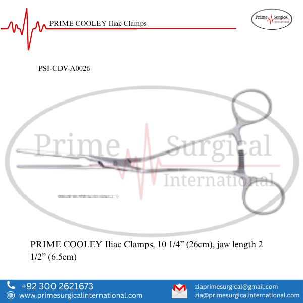 PRIME COOLEY Partial Occlusion Clamps, 9” (22.9cm), jaw length 2” (5.2cm), depth 1/2” (1.2cm)