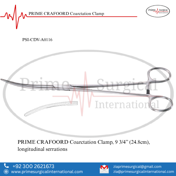 PRIME COOLEY Neonatal Vascular Clamps, 5 1/8” (13cm), jaw length 1 1/2” (3.8cm), carotid clamp