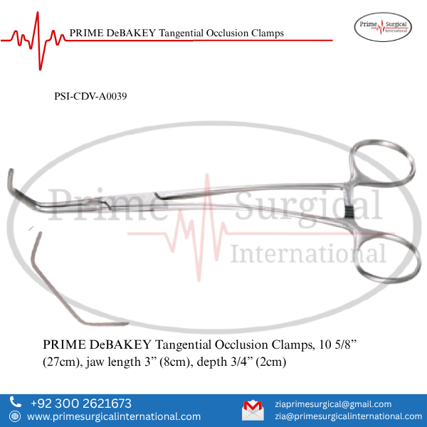 PRIME DeBAKEY Tangential Occlusion Clamps. Material: German Stainless Steel • Stainless Steel Instrument • ISO 9001:2015 & CE MDR Certified