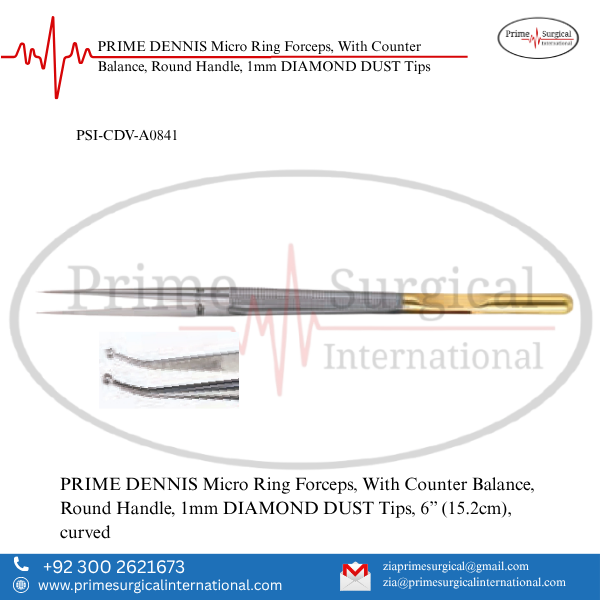 PRIME DENNIS Micro Ring Forceps, With Counter Balance, Round Handle, 1mm DIAMOND DUST Tips