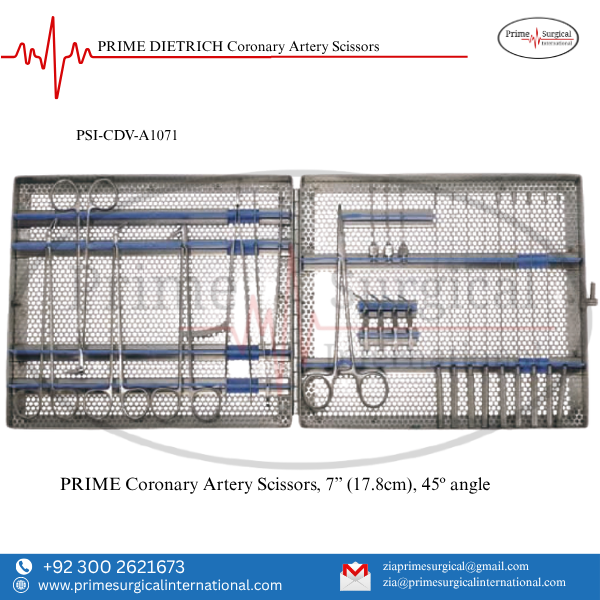 PRIME DIETRICH Coronary Artery Scissors. Material: German Stainless Steel • Stainless Steel Instrument • ISO 9001:2015 & CE MDR Certified