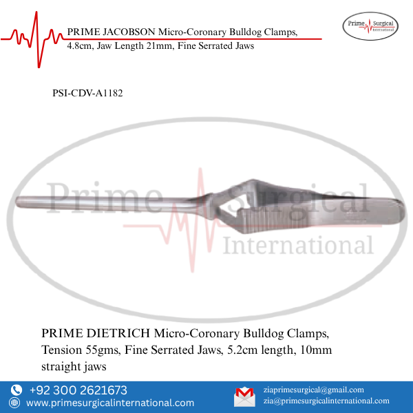 PRIME DIETRICH Micro-Coronary Bulldog Clamps, Tension 55gms, Fine Serrated Jaws