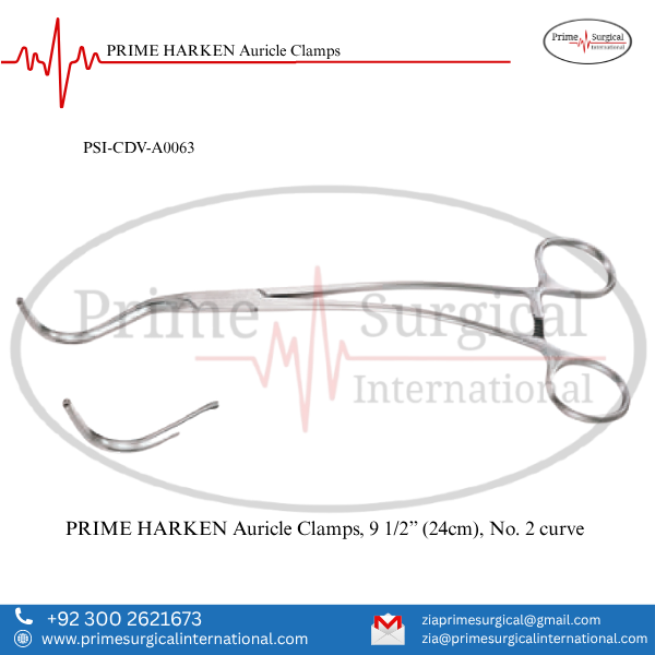 PRIME HARKEN Auricle Clamps, 9 1/2” (24.1cm), cross-serrated, No. 2 curve