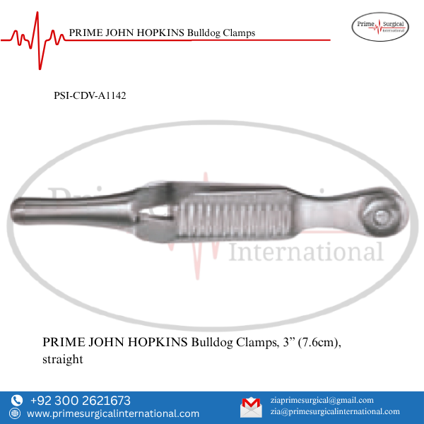 PRIME JOHN HOPKINS Bulldog Clamps. Material: German Stainless Steel • Stainless Steel Instrument • ISO 9001:2015 & CE MDR Certified