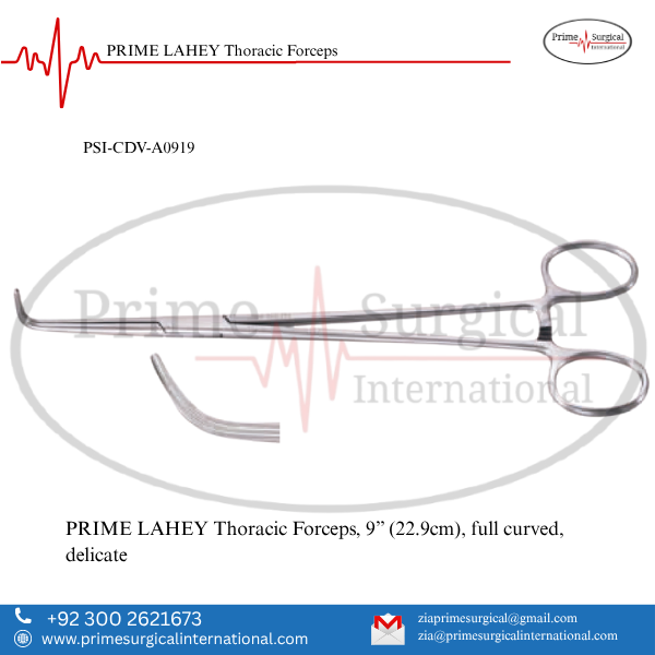 PRIME LAHEY Thoracic Forceps. Material: German Stainless Steel • Stainless Steel Instrument • ISO 9001:2015 & CE MDR Certified