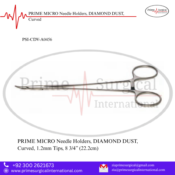PRIME MICRO Needle Holders, DIAMOND DUST, Curved. Material: German Stainless Steel • Stainless Steel Instrument • ISO 9001:2015 & CE MDR Certified