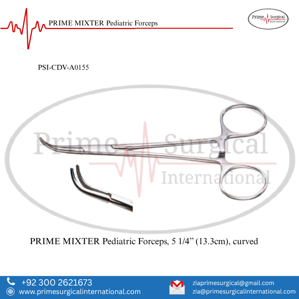 PRIME MIXTER Pediatric Forceps. Material: German Stainless Steel • Stainless Steel Instrument • ISO 9001:2015 & CE MDR Certified