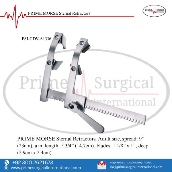 PRIME MORSE Sternal Retractors. Material: German Stainless Steel • Stainless Steel Instrument • ISO 9001:2015 & CE MDR Certified