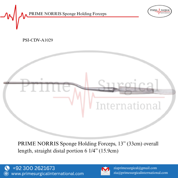 PRIME NORRIS Sponge Holding Forceps. Material: German Stainless Steel • Stainless Steel Instrument • ISO 9001:2015 & CE MDR Certified