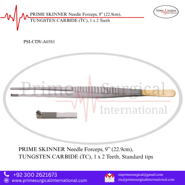 PRIME SKINNER Needle Forceps, 9” (22.9cm), TUNGSTEN CARBIDE (TC), 1 x 2 Teeth