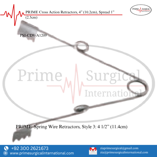 PRIME Spring Wire Retractor. Material: German Stainless Steel • Stainless Steel Instrument • ISO 9001:2015 & CE MDR Certified