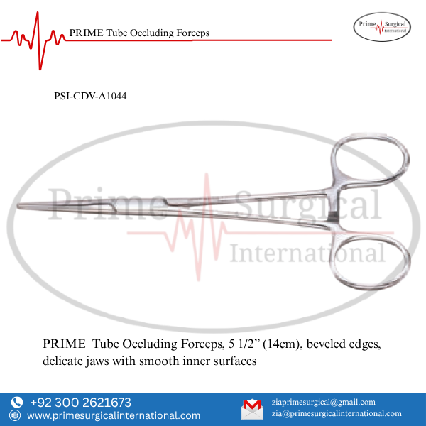 PRIME Tube Occluding Forceps. Material: German Stainless Steel • Stainless Steel Instrument • ISO 9001:2015 & CE MDR Certified