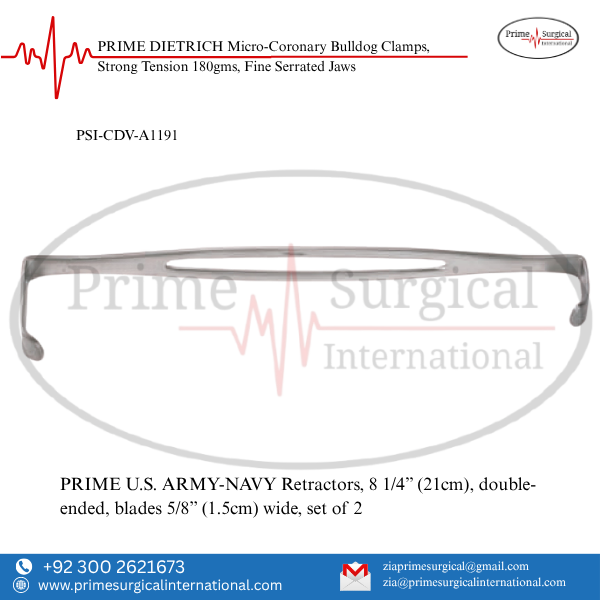 PRIME U.S. ARMY-NAVY Retractors. Material: German Stainless Steel • Stainless Steel Instrument • ISO 9001:2015 & CE MDR Certified