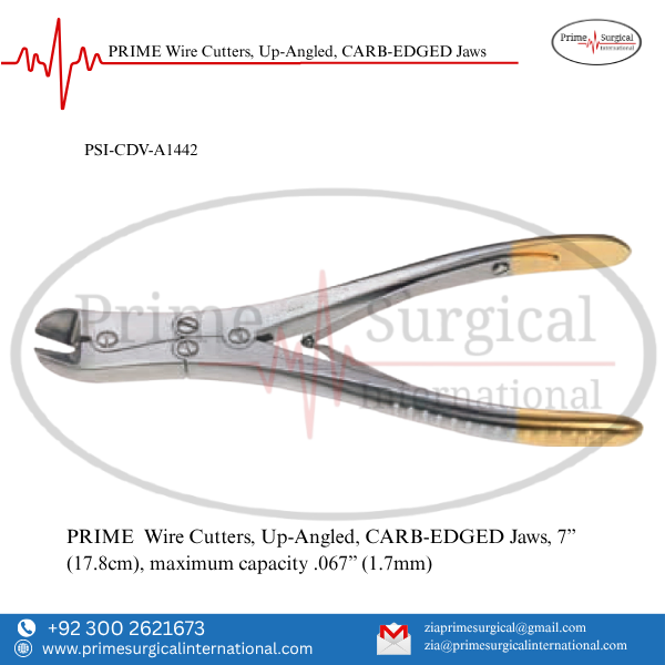 PRIME Wire Cutters, Up-Angled, CARB-EDGED Jaws. Material: German Stainless Steel • Stainless Steel Instrument • ISO 9001:2015 & CE MDR Certified
